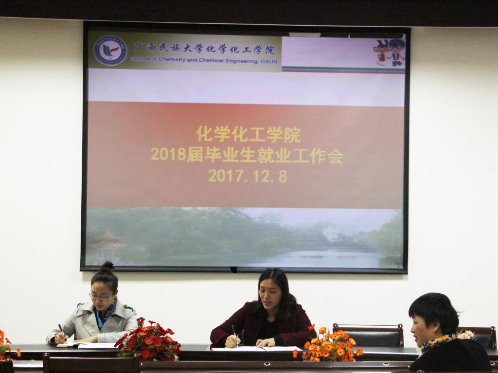12月8日下午,化学化工学院于扬帆楼109会议室召开2018届毕业生就业工作会,参加本次会议的人员有学院党委副书记门媛媛、辅导员栾程程以及14级各班班主任和就业信息员。
