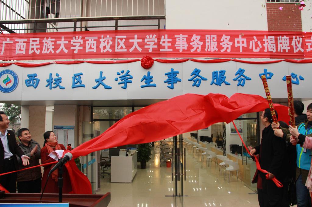 12月13日下午,我校在西校区3号学生公寓架空层举行西校区大学生事务服务中心揭牌仪式。出席本次仪式的有学校党委常委廖安平副书记、李珍刚副校长、党委宣传部部长陈铭彬,以及学生工作部(处)、招生就业处、财务处等各相关部门和西校区各学院分管的领导老师们。仪式由学工处处长周丽华主持,廖安平副书记,李珍刚副校长为西校区大学生事务服务中心揭牌。