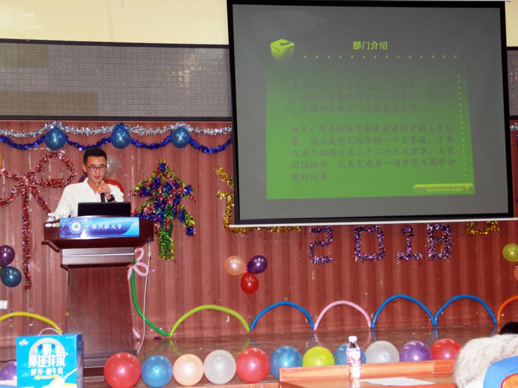 此次晚会不仅是各部门的风采展,更是对我院团委学生会在2017年度的工作总结。每个部门都通过PPT的形式对自己部门进行了总结,内容包括部门职能、成员介绍,2017年度工作内容等,并指出工作的不足之处及对未来的展望。