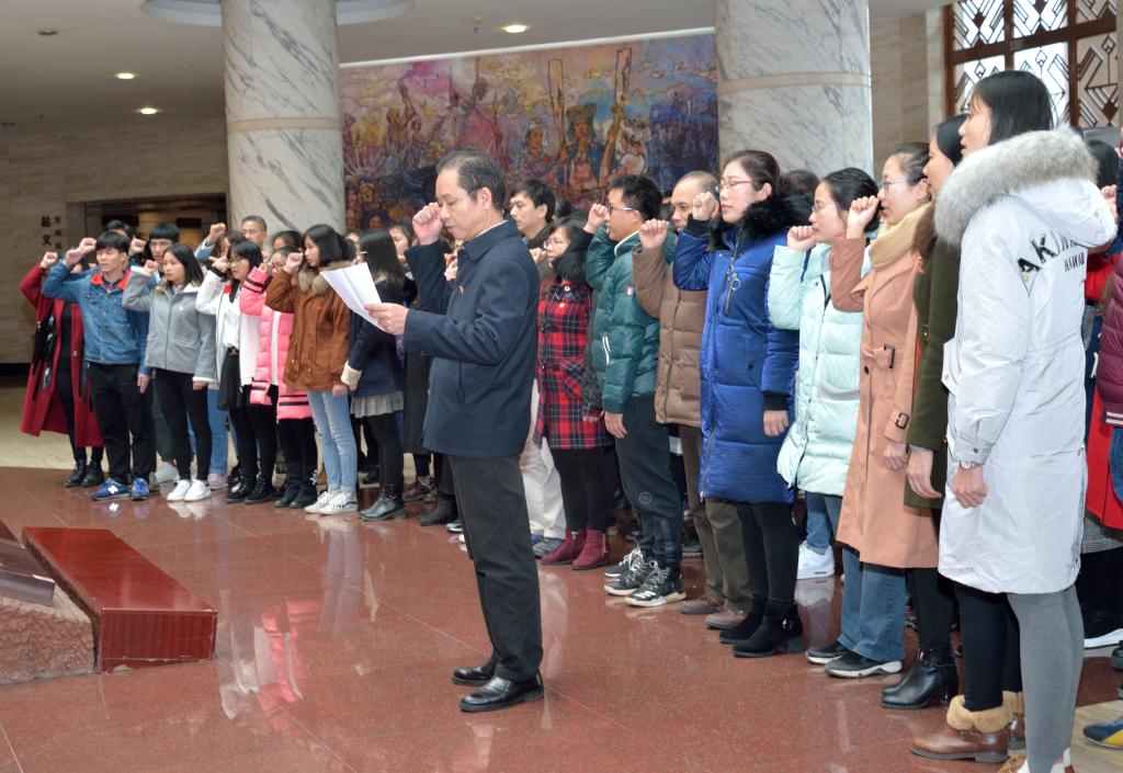 陆宏儒书记带领师生党员重温入党誓词,号召我们要从红色历史中汲取力量,学习和继承革命先辈“一心为公,一切为民”的高尚节操,不断筑牢思想信念根基,不忘初心,牢记使命,艰苦奋斗,砥砺前进,为实现中华民族伟大复兴的中国梦做出积极贡献。