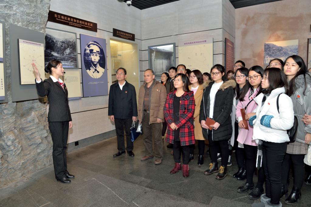 6日早晨阴雨绵绵,寒风刺骨,但是这并没有影响师生党员高涨的情绪,经过约3小时的车程,化学化工学院90余名师生党员来到了百色。百色市是中国革命的摇篮之一,是中国工农红军第七军的发祥地。如今,承载着那些峥嵘岁月的民族记忆凝固成纪念馆、纪念碑,供后世瞻仰。师生党员先后参观了百色起义纪念馆、红军铁索桥、百色全国廉政教育基地和百色起义纪念碑。