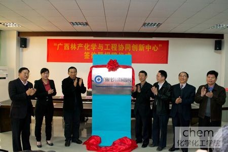 2012年12月18日,“广西林产化学与工程协同中心”签约暨揭牌仪式在我校西校区化学化工学院进行。南京林业大学化学工程学院、广西梧州日成林产化工股份有限、广西林业科学研究院与我院共同签订了合作协议。协同创新是我国在新形势下推出的一个重要的,具有开拓性的重大举措。通过这次协同创新合作,多渠道推进企业、行业与学校的全面技术合作,形成专业、产业相互促进、共同发展。