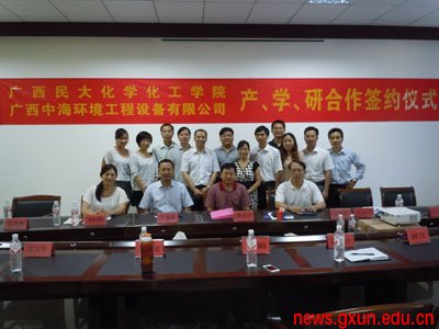 7月20日上午,化学化工学院在西校区理工楼109室与广西中海环境工程设备有限公司签订产、学、研合作协议,双方在环保领域内的人才培养、技术研发以及相关专业学生就业等方面达成合作协议,有力地推动了我校产、学、研项目的进展。