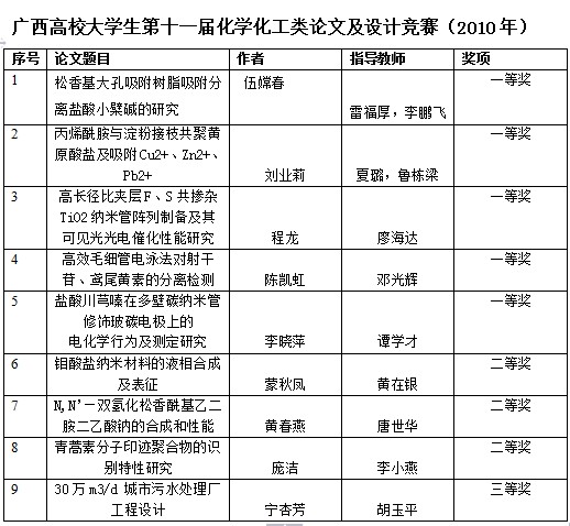 广西高校大学生第十一届化学化工类论文及设计竞赛(2010年)